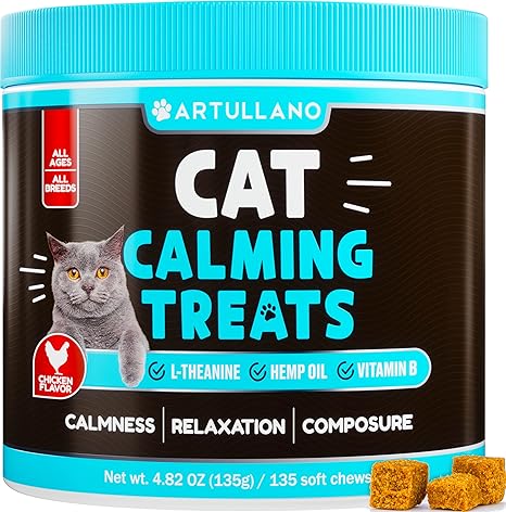 Amazon Com Hemp Cat Calming Treats For Anxiety And Stress 135 Chews Storm Anxiety Somposure Grooming Separation Travel Calming Aid For Cats With Hemp Oil L Theanine Cat Melatonin